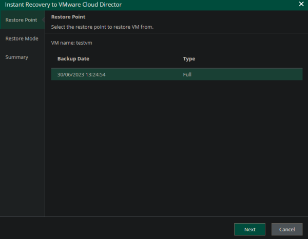 2. Restore Point auswählen aus dem die VM wiederhergestellt werden soll.
